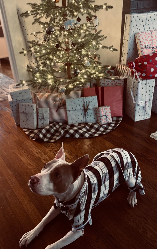 Two Christmases ago, we got him a DNA test. Surprisingly he is not an American Pit Bull Terrier, but 77% another breed that just gets lumped into that category, which he also doesn’t look like…and then a bunch of designer dogs mixed in, like a Soft-Coated Wheaton Terrier (LOL since he practically has no hair), a Brazilian Terrier, a Norwegian Bulhund, and German Short Hair Pointer… he really doesn’t look like many of these other dogs, but they may just be his saving grace.