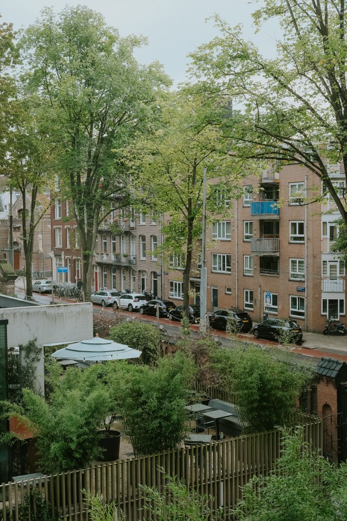 We stayed at Hotel Arena near Oosterpark, and I have to say that it was magically located, peaceful, and not far from transit options, food, and some exciting sites. We were placed in a suite with a nice street view, and our room was loft style with our bed being upstairs. They were some very tiny winding stairs, and while it was a nice touch and I’d stay again, it wasn’t super conducive to being pregnant and having to get up to go downstairs to the restroom in the middle of the night. Nonetheless, it was fine for the three nights we spent there. They’re also very eco-friendly, and that is much appreciated. I’ve found that throughout this pregnancy, I’ve been really diving into more sustainable options and practices.