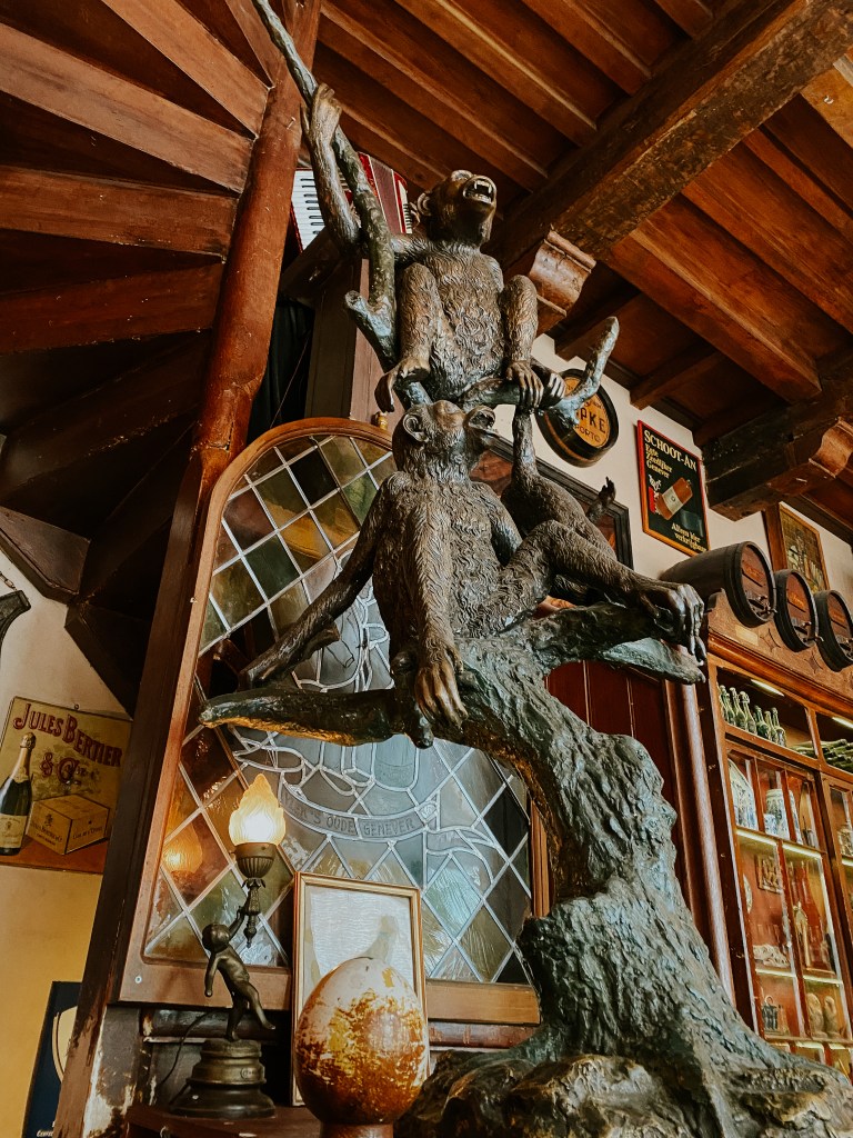 In’t Aepjen is a small bar, that hosted sailors returning from various trips with the Dutch East India Company. These sailors would port for drinks, women, and recreation and with them, they brought their spoils from sailing. This included various monkeys, spices, and other goods. After getting way too plastered and having way too much fun, they quickly ran out of money as one does in those situations, and traded their monkeys as payment to the bar for a place to sleep.