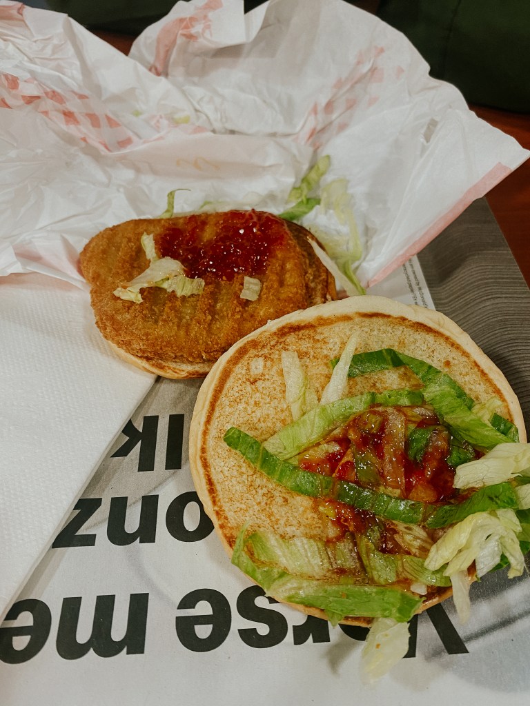 I’ve always had this habit of eating at foreign McDonalds. One, because they offer free wifi, and two, I like to see and try the different menu items abroad. I’ll maintain that the best one yet was Egypt. So in Amsterdam, we stopped at a little hole in the wall McDonalds and tried the “Chili Chicken Burger,” and it was just sweet Thai Chili sauce thrown on McChicken. A 2/10 for me. Also, a thing to note, is that McDonalds abroad only have a small and x-small drink option. None of that medium or large business like you find in the USA. Explains probably why they’re healthier. Anyways, here is said Chili Chicken Burger: