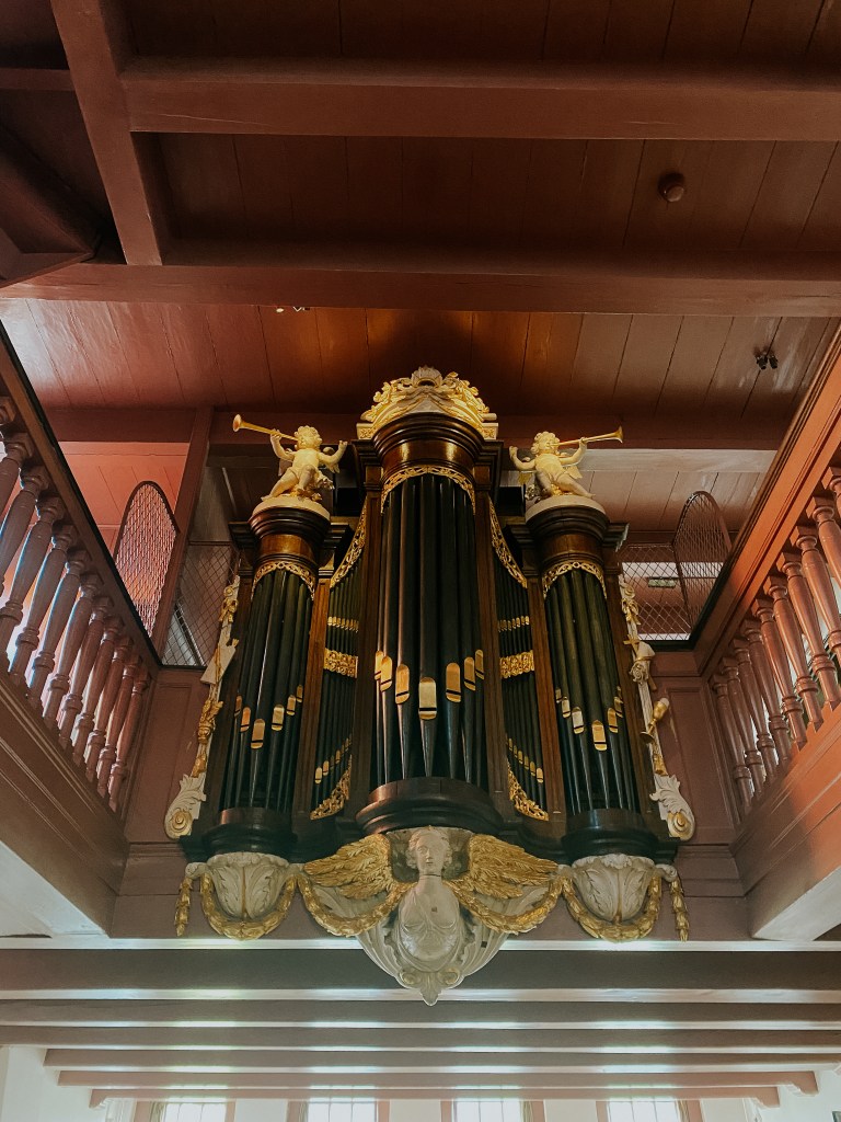 It was built in 1630, in an old canal home, and renovated through three floors to convert it into a secret Catholic church, as protestantism had taken hold in the Netherlands. It was okay to practice in private, not outwardly, as most Catholic churches were ornate in nature. Instead, this canal home was inconspicuous to the unknowing, and fronted a fabric business out of the front door. However, once inside, it served as a worshipping space.